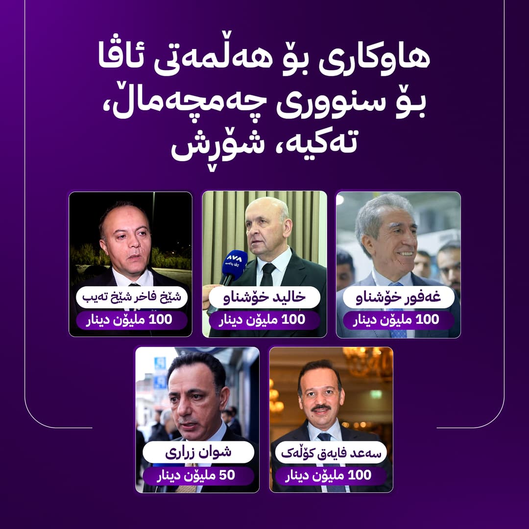 کۆمەڵێک سەرمایەداری دیکە بە سەدان ملیۆن دینار بەشداری هەڵمەتی ئاڤا دەکەن