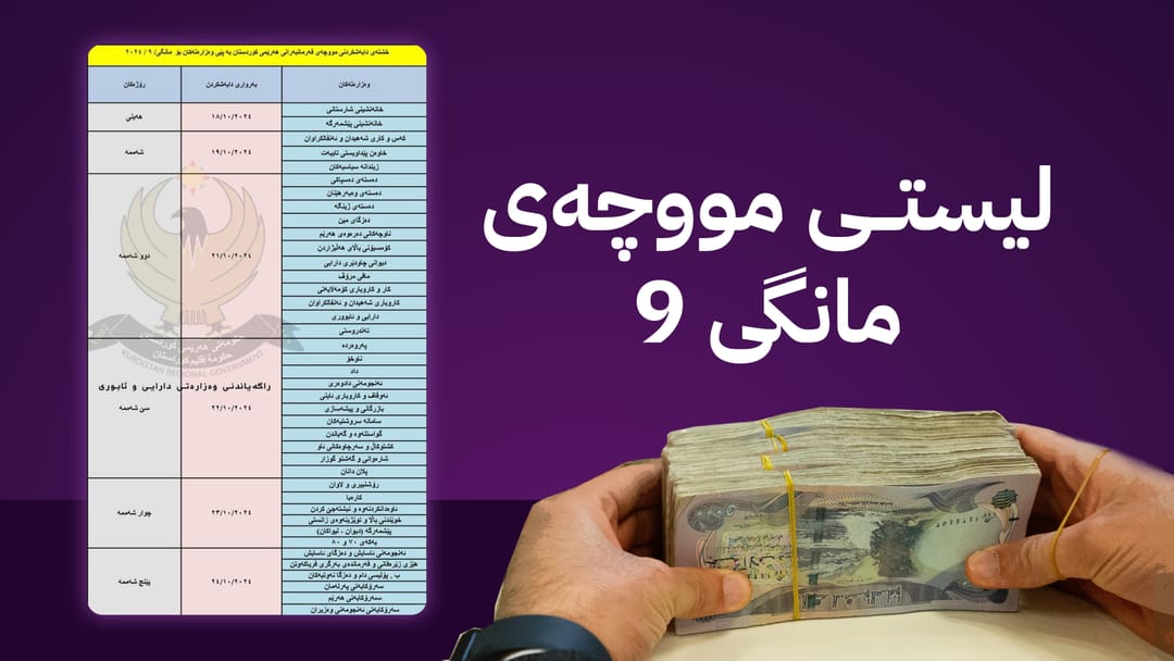 لیستی مووچە بڵاودەکرێتەوە و مووچەی مانگی نۆ دابەش دەکرێت