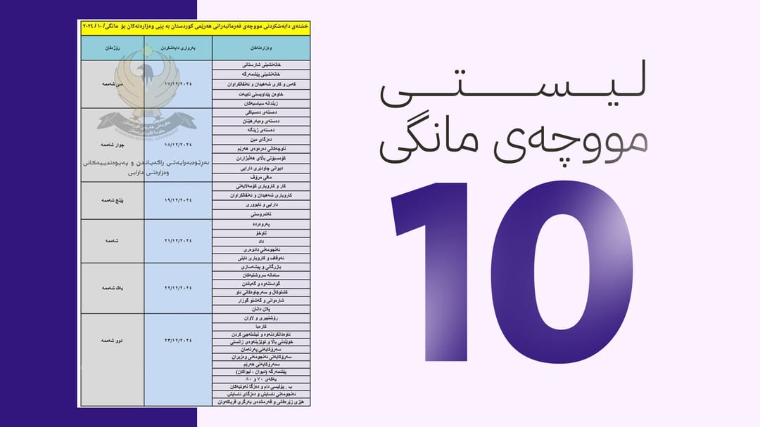 لیستی مووچەی مانگی 10 بڵاودەکرێتەوە