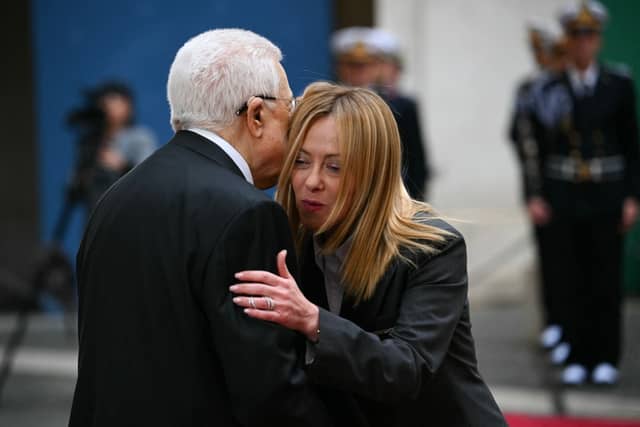 جۆرجیا مێلۆنی پێشوازییەکی گەرمی لە سەرۆکی فەڵەستین کرد