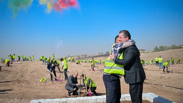 بەوێنە؛ سەرۆکوەزیران مەسرور بارزانی یەکەم نەمامی لە پشتێنەی سەوزایی هەولێر چاند