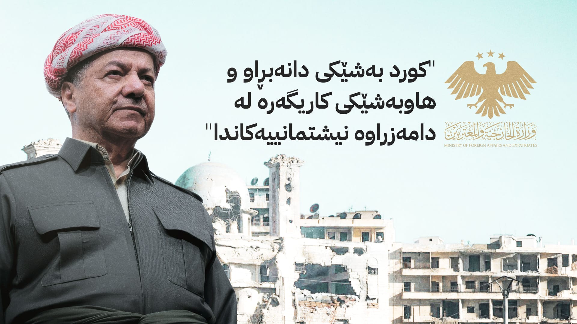 وەزارەتی دەرەوەی سووریا سوپاس و پێزانینی قووڵی ئاراستەی سەرۆک بارزانی دەکات بۆ ڕۆڵی کاریگەر و بەرهەمداری لە پشتگیریکردنی سەقامگیری و پاراستنی یەکپارچەیی خاکی سووریا