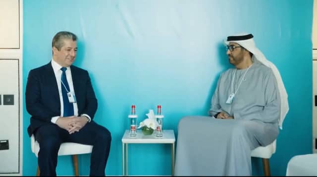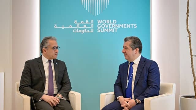 مەسرور بارزانی، سەرۆکوەزیرانی هەرێمی کوردستان، لە دوبەی لەگەڵ خالید ئەلعینانی، بەڕێوهبهرى گشتيى نوێی ڕ...