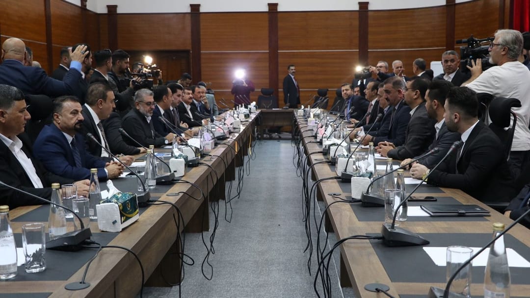 دوای کۆبوونەوە لەگەڵ سەرۆکوەزیران مەسرور بارزانی، ئێستا محەممەد شیاع سوودانی، سەرۆکوەزیرانی عێراق لەگەڵ ن...