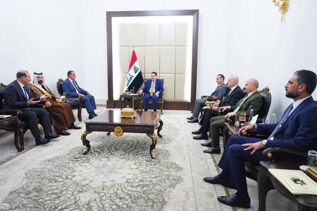 محەممەد شیاع سوودانی، سەرۆکوەزیرانی عێراق لە بەغدا پێشوازی لە فراکسیۆنە عەرەبییەکانی ئەنجوومەنی پارێزگای...