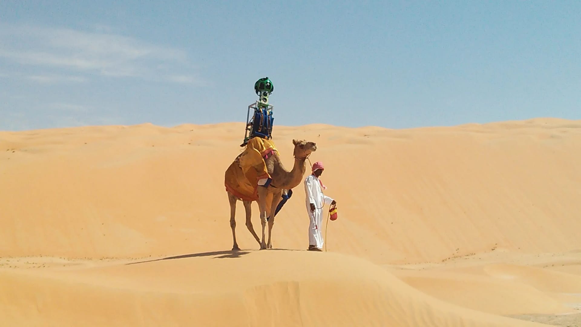 گووگڵ بە مەبەستی دیاریکردنی نەخشەی ڕێگا و ناوچەکان لە بیابانەکاندا وشتری بەکرێ گرتووە.