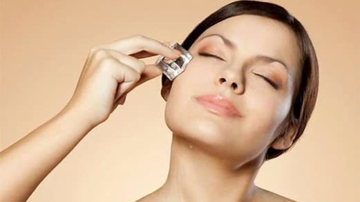 بە سەهۆڵ مەساج بە دەموچاوت بکە، بە شێوەیەکی بازنەیی بۆ ماوەی یەک بۆ دوو خولەک...