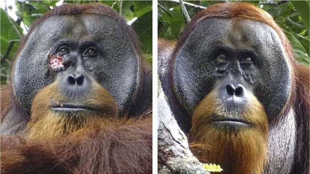 مەیموونێک بە جۆرە گیایەک برینی خۆی ساڕێژ دەکات