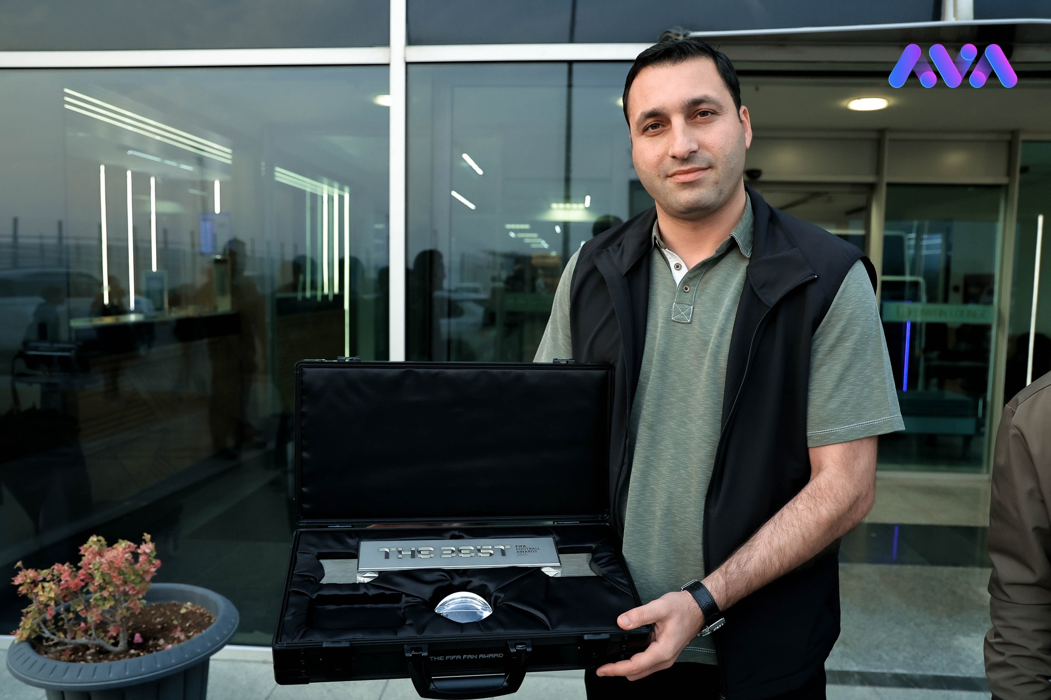 خەڵاتی 'زە بێست'ـی فیفا گەیشتە هەرێمی كوردستان و ئاڤا میدیا وەك تاكە میدیا و یەكەم میدیا لە فڕۆكەخانەی نێودەوڵەتیی هەولێر لە ساتەوەختی گەیشتنی خەڵاتەكە ئامادە بوو.