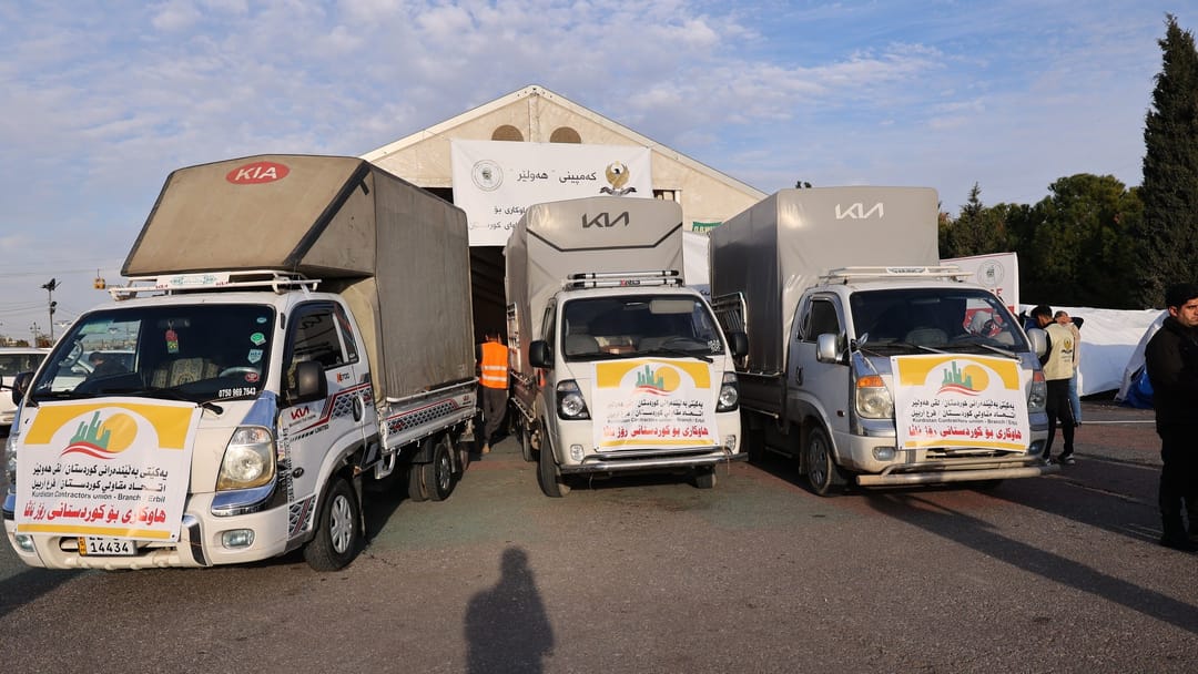 بە ئاڵای کوردستانەوە پێشوازی لە تیمەکانی دەزگای خێرخوازیی بارزانی و هاوکارییە مرۆییەکانی دەکەن...