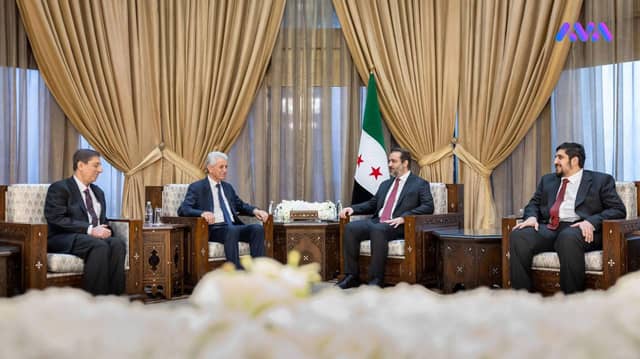 ئەسعەد حەسەن شەیبانی، وەزیری دەرەوەی سووریا، لە دیمەشق پێشوازیی لە شاندێکی ئەنجوومەنی نیشتمانیی کورد (ئەن...