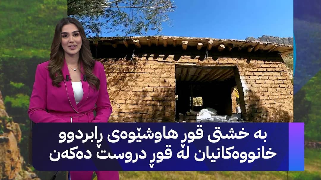 کۆمەڵێک گەنج بە خشتی قوڕ هاوشێوەی کۆن خانووەکانیان دروست دەکەن