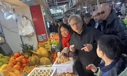 جێنسن هوانگ لە بازاڕێکی میللی میوە دەکڕێت