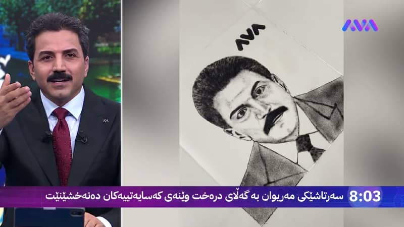 سەرتاشێکی مەریوان بە گەڵای درەخت وێنەی کەسایەتییەکان دەنەخشێنێت