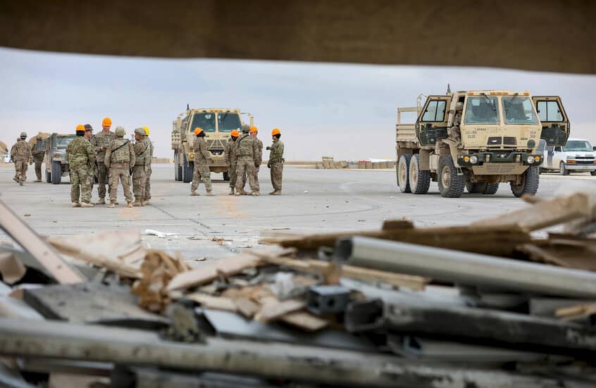 کاروانێکی سەربازیی ئەمریکا لە بنکەی عەین ئەسەد دەکشێتەوە