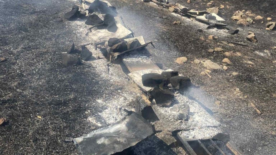 دیمەنی سووتانی ژمارەیەک سندووقی هەنگ بەهۆی ئاگرەکەوە