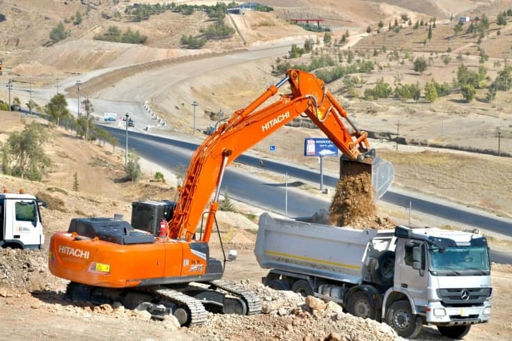 دیمەنێک لە ڕێگای نێوان هەولێر - کۆیە چەند ئامێرێک کار لە پرۆژەکە دەکەن
