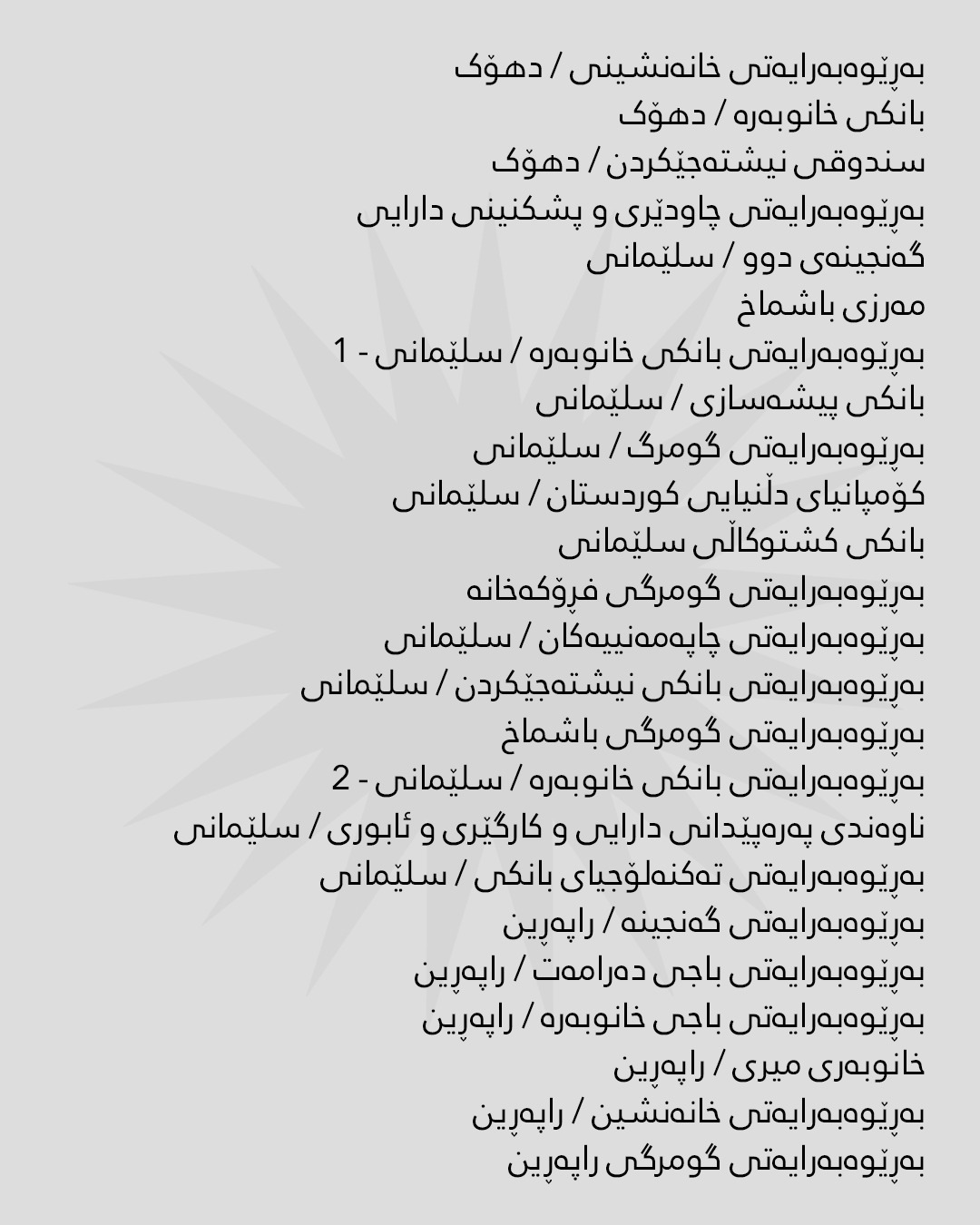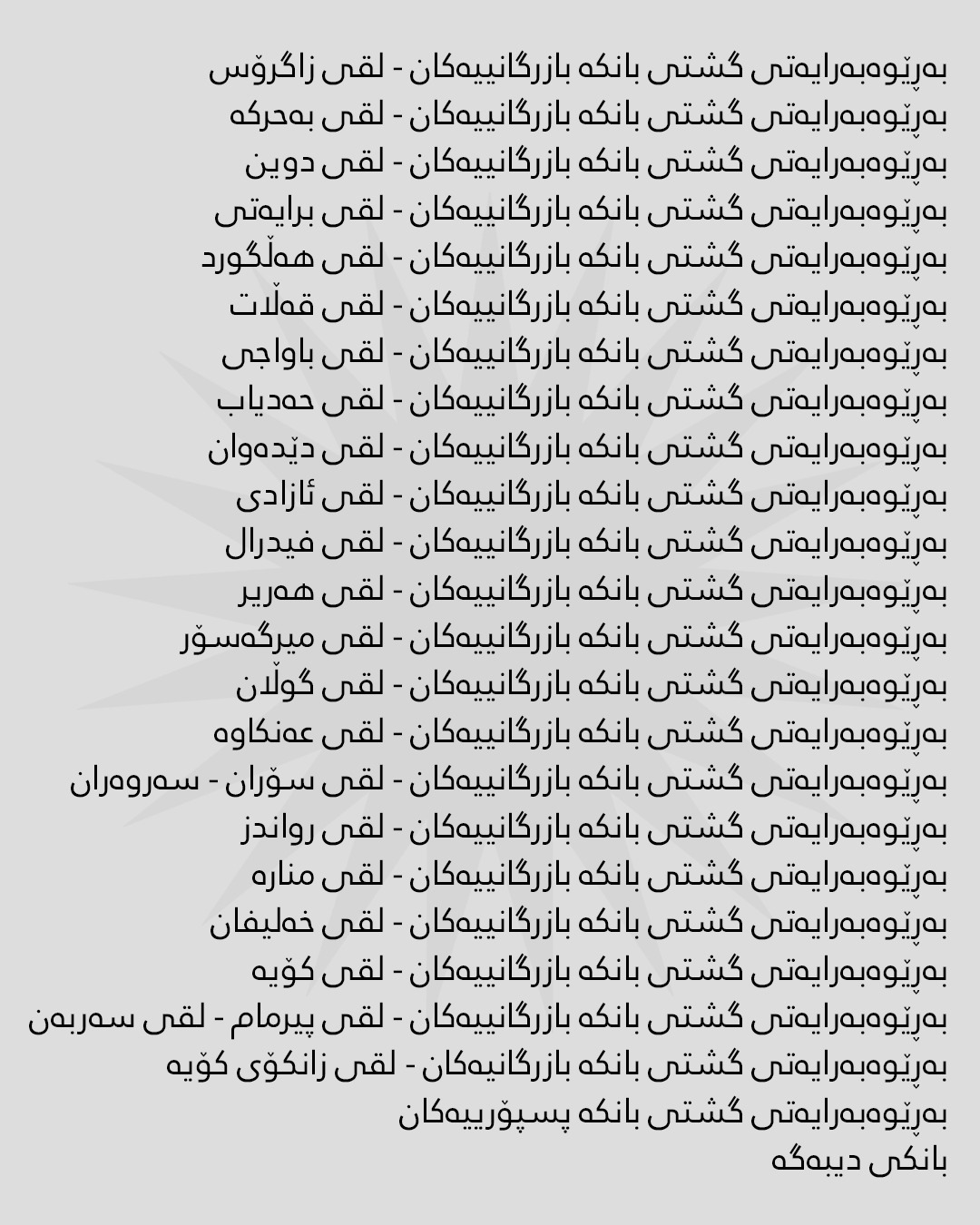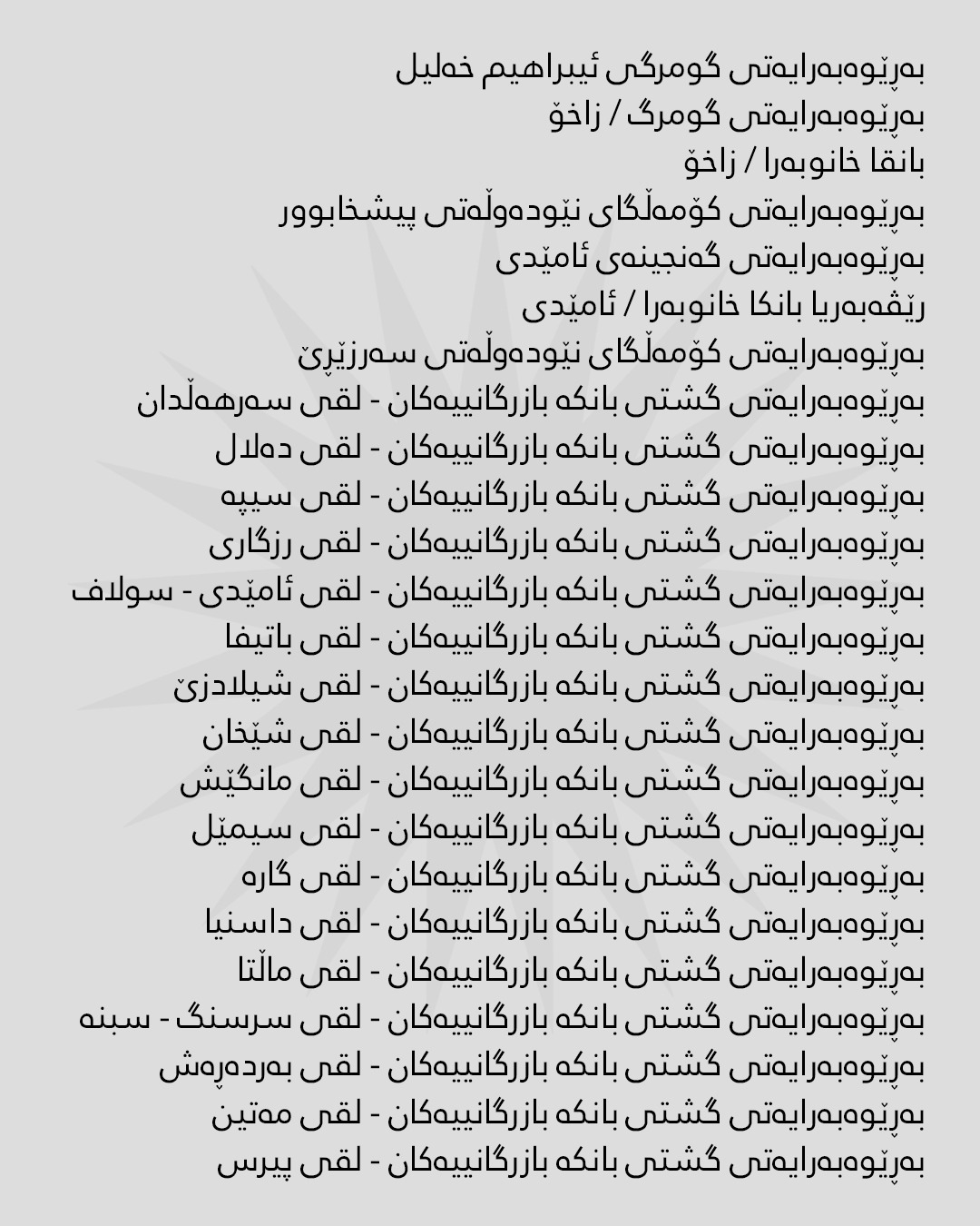 ڕاگەیێنراوی فەرمی: بەگوێرەی لیستەكەی تیمی هەژماری من، هەریەك لە وەزارەتەكانی پەروەردە، دارایی، تەندروستی، شەهیدان و خوێندنی باڵا، مووچەی خانەنشین، دەستەكانی کۆمیسیۆنی هەڵبژاردن، وەبەرهێنان، دیوانی چاودێری دارایی، ژینگە، کاروباری مین، مافی مرۆڤ، دەستپاکی و ناوچە کوردستانییەکانی دەرەوە سبەی دەتوانن مووچەكانیان وەربگرن.