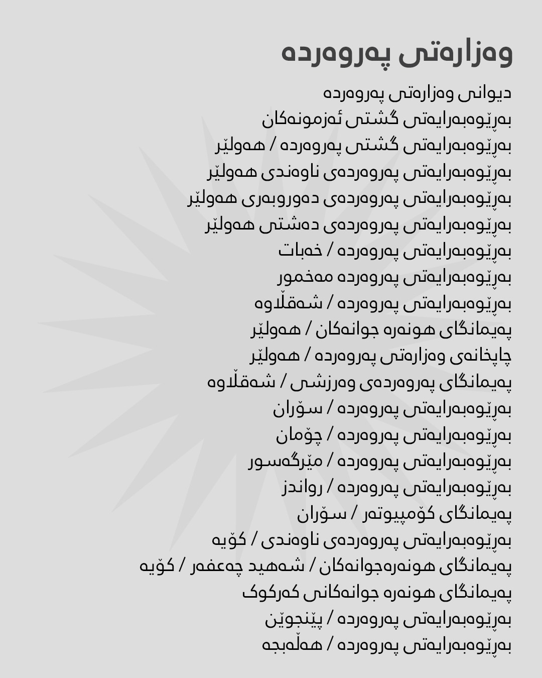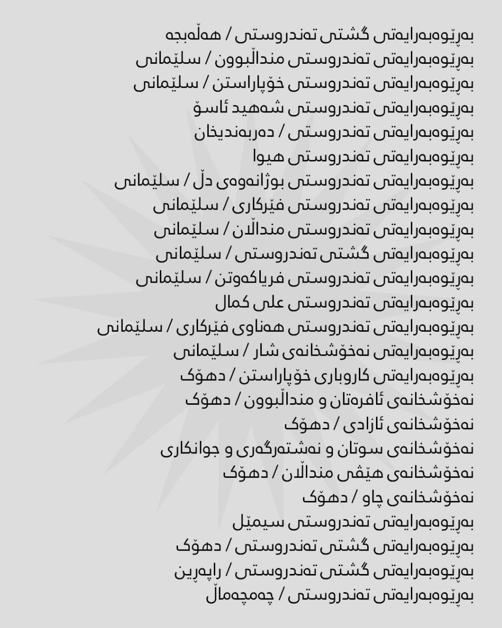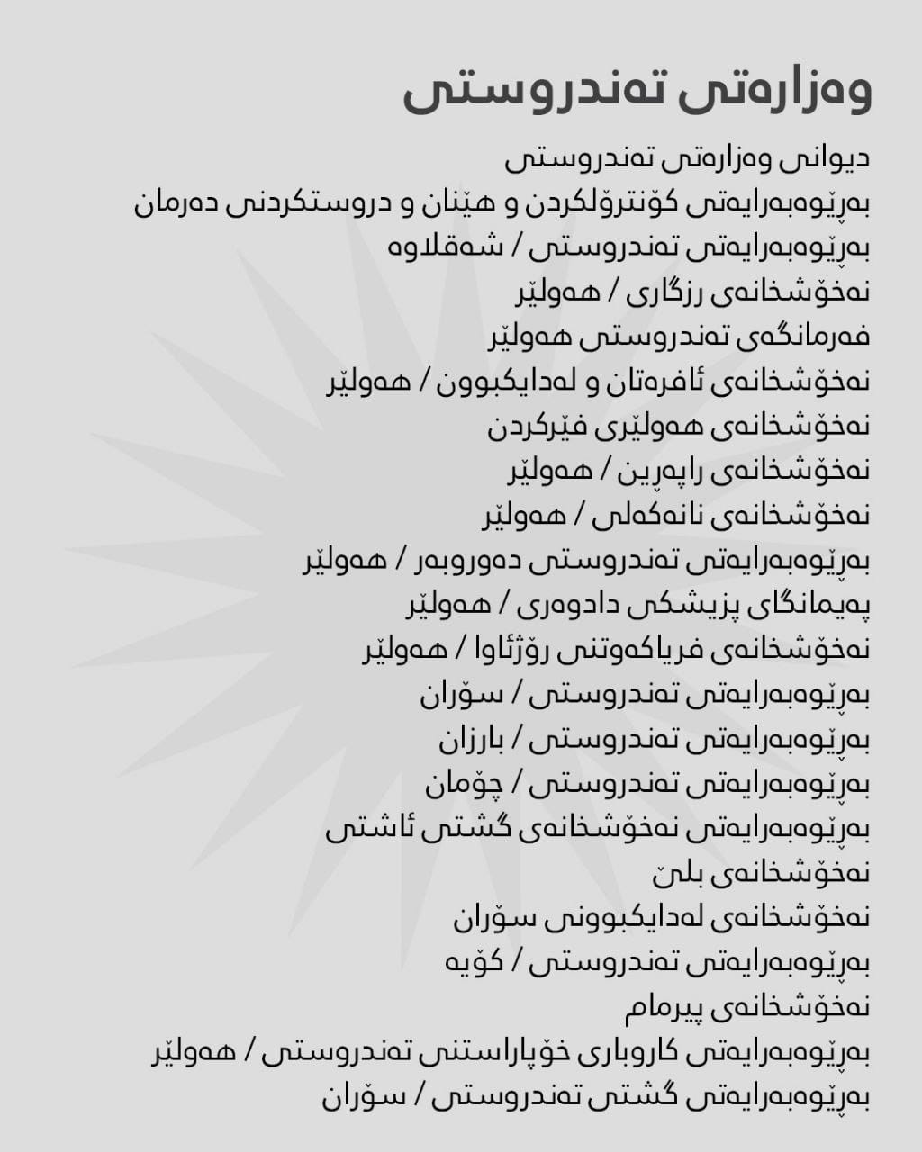 لیستی مووچەی سبەی دووشەممەی بەشێک لە وەزارەت و دەستە و فەرمانگەکان