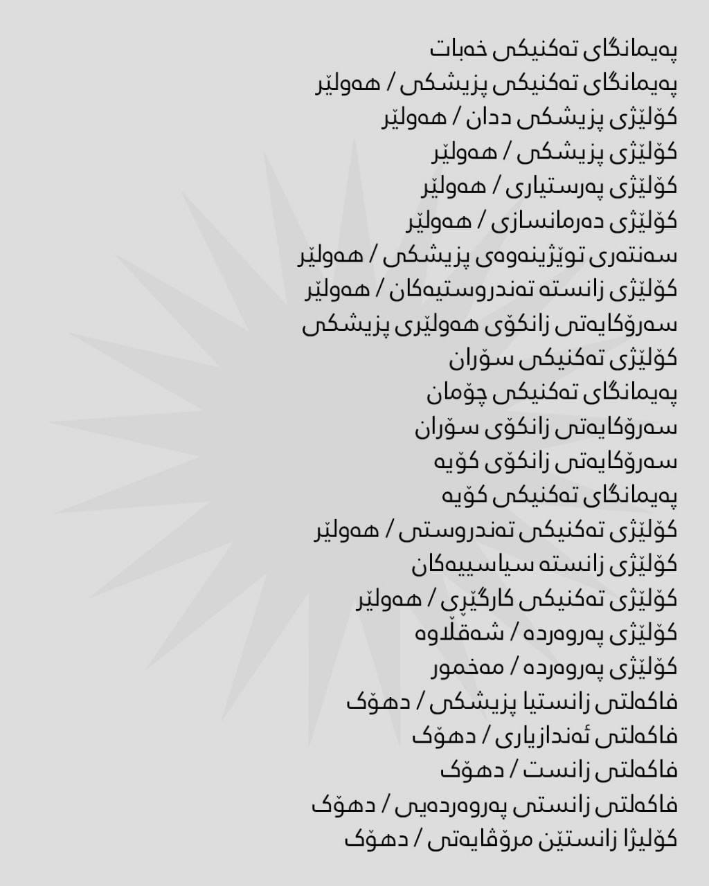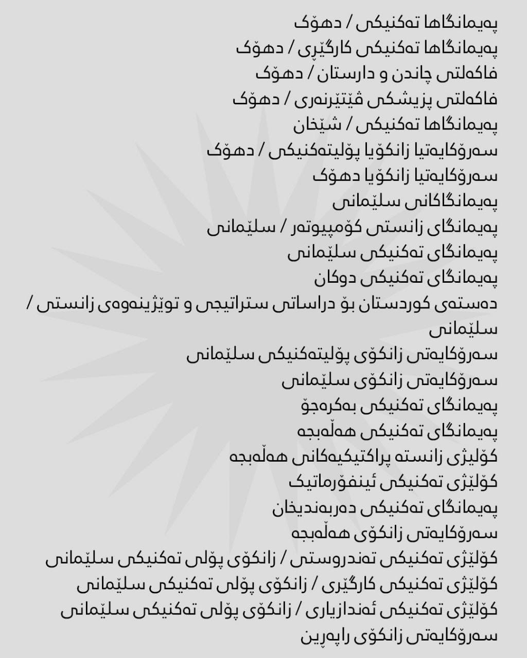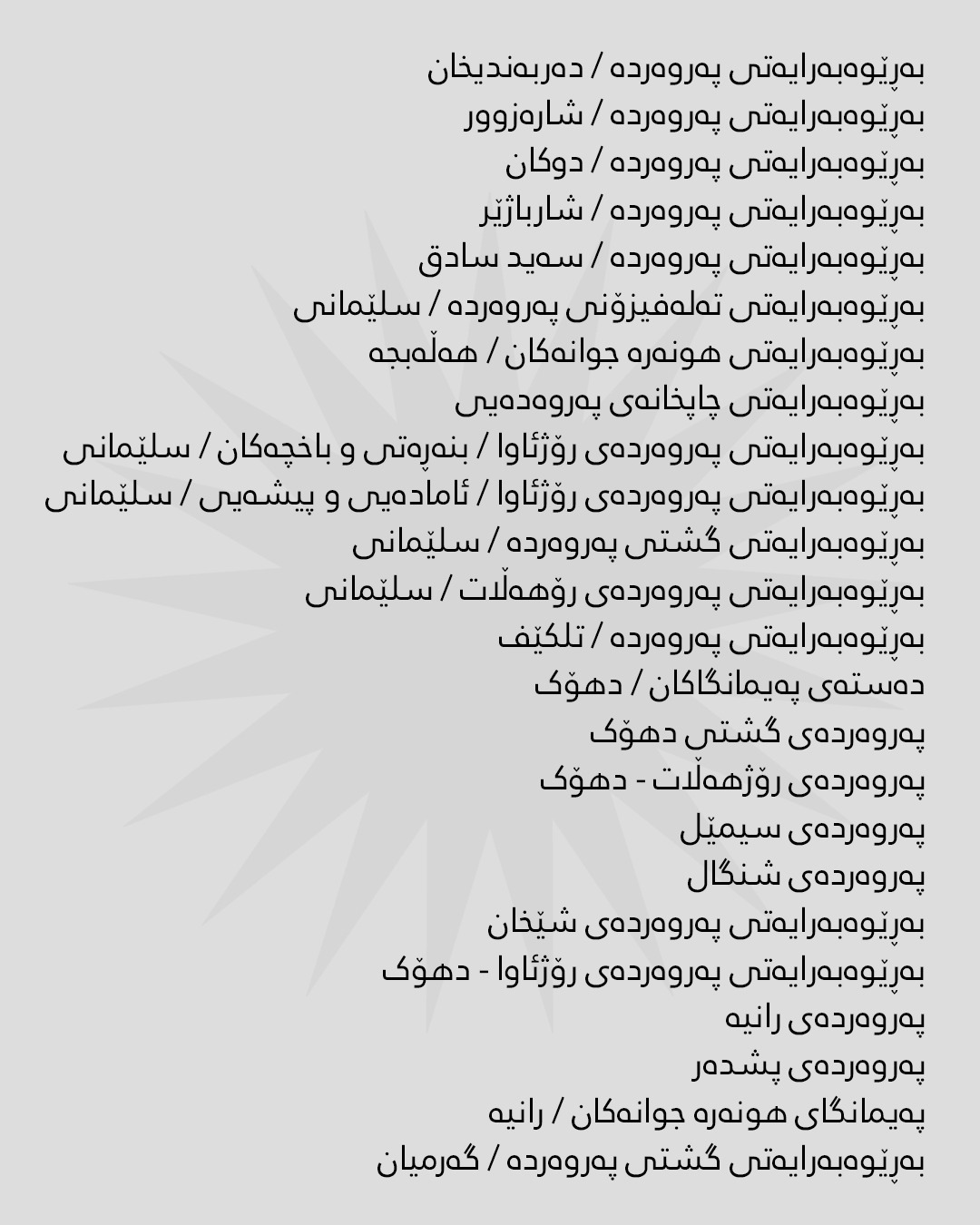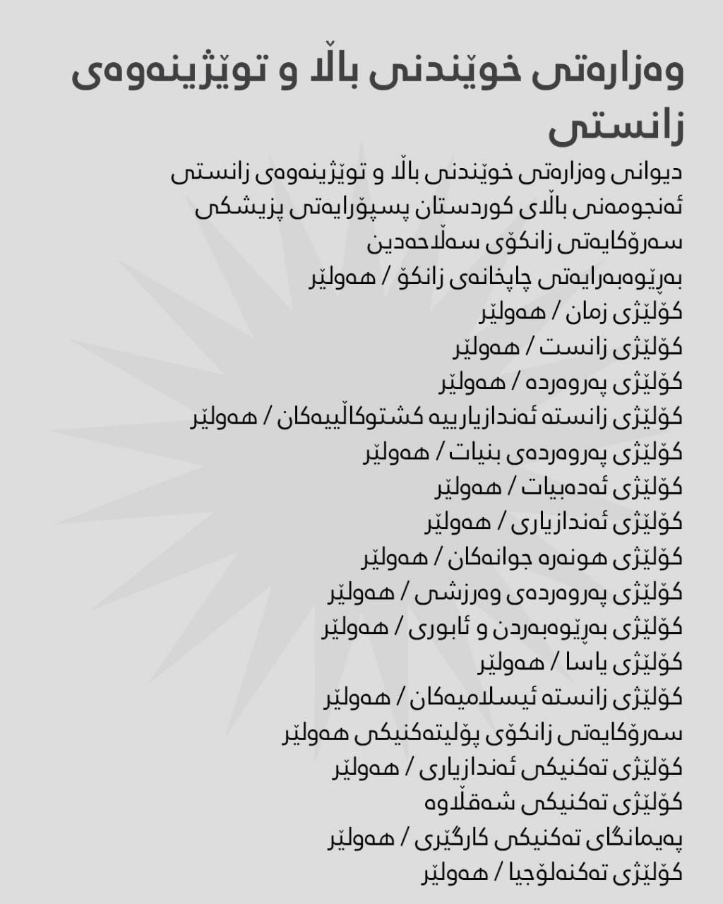 لیستی مووچەی سبەی دووشەممەی بەشێک لە وەزارەت و دەستە و فەرمانگەکان