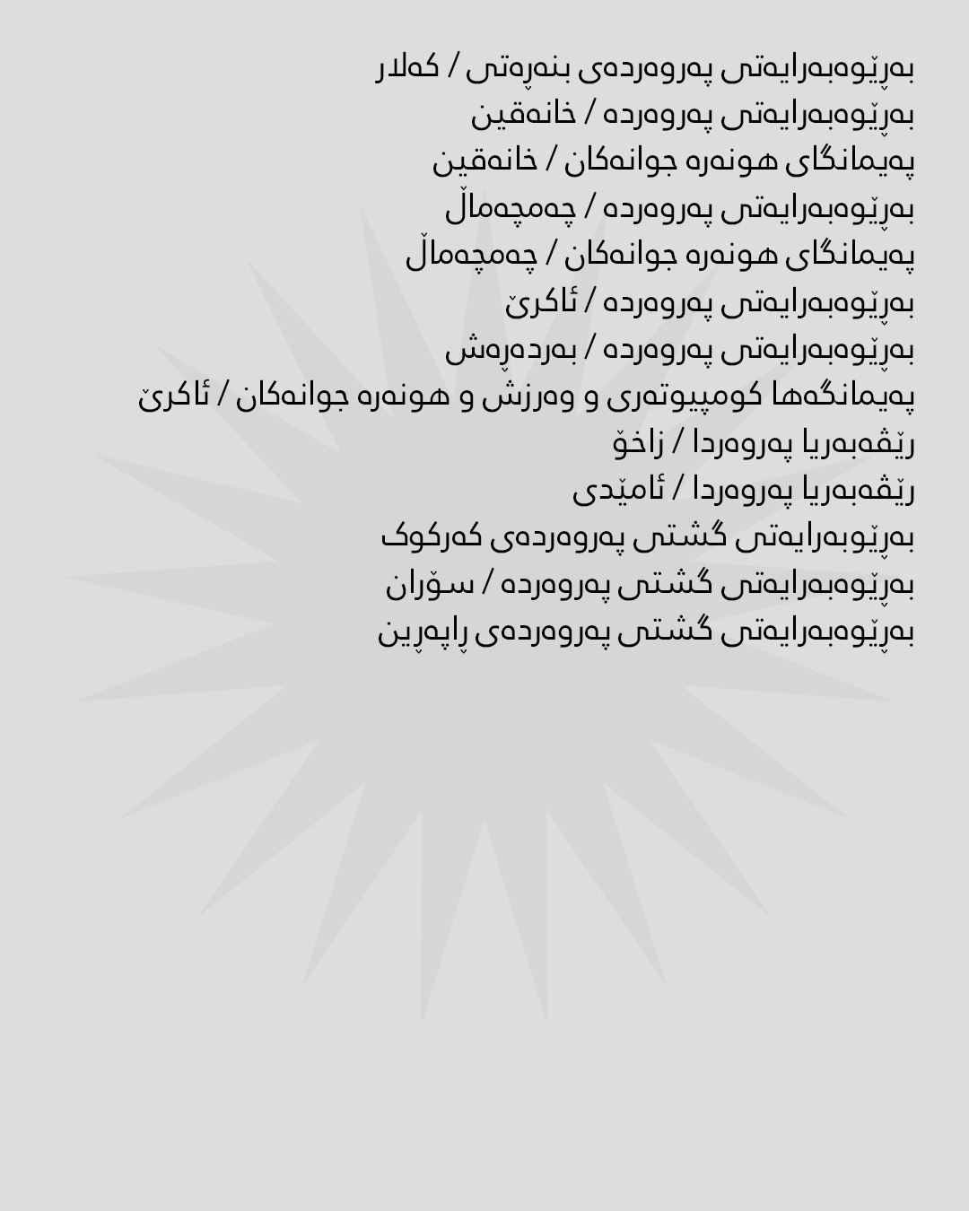 زیاتر لەسەر ئەم بابەتانە بکۆڵەرەوە