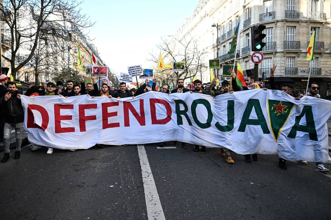 خۆپیشاندەران لە فەڕەنساوە داوای پاراستی ڕۆژئاوای کوردستان دەکەن