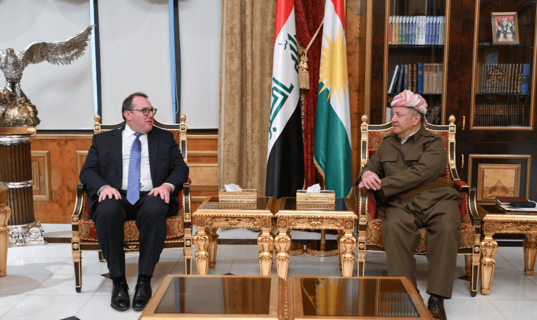 مەسرور بارزانی، سەرۆکی حکومەتی هەرێمی کوردستان، پێشوازی لە جۆشوا هاریس، هەڵسوڕێنەری باڵیۆزخانەی ئەمریکا ل...