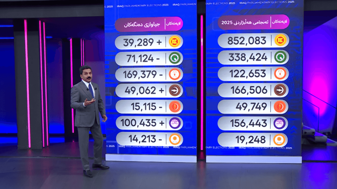 ژمارەی دەنگ و کورسی لایەنە کوردستانییەکان بەپێی دەنگە جیاکراوەکان تا ئێستا