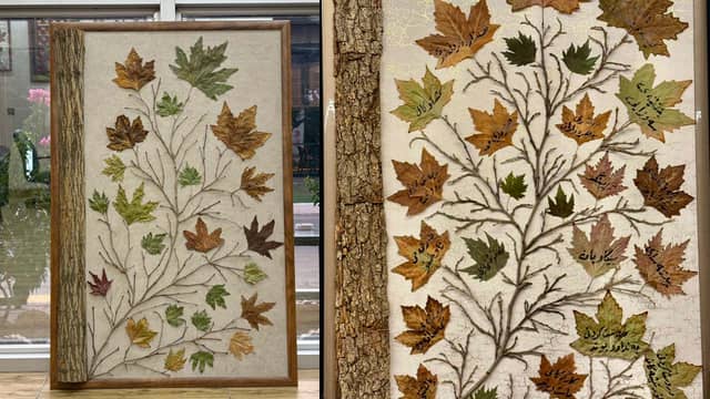 مامۆستایێکی زانکۆ لە گەڵای هەڵوەریو تابلۆی سرووشتی دروست دەکات